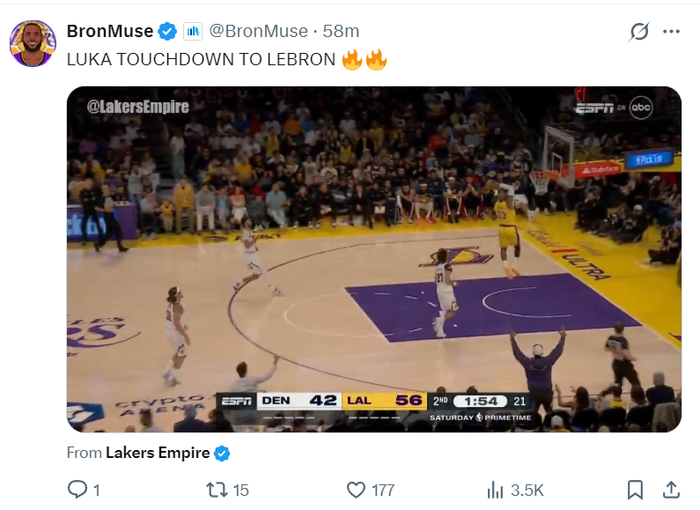 湖人三巨头上半场的发挥都不错,东契奇16分8助攻6篮板,詹姆斯13分2篮板2助攻2抢断,里夫斯12分2篮板1助攻,湖人也一度领先17分。